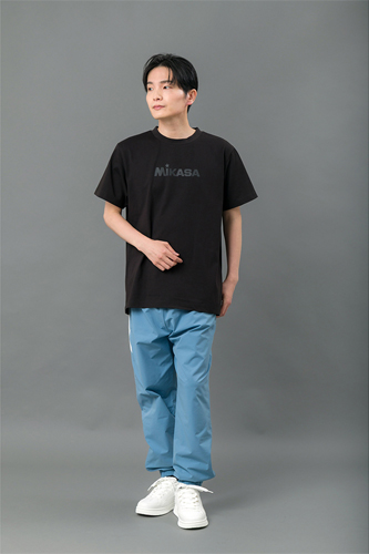 胸中央に配置した同色のロゴグラフィックが、シンプルなデザインにさりげないアクセントをプラス。