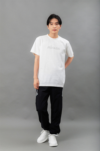 胸中央に配置した同色のロゴグラフィックが、シンプルなデザインにさりげないアクセントをプラス。