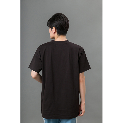 胸中央に配置した同色のロゴグラフィックが、シンプルなデザインにさりげないアクセントをプラス。