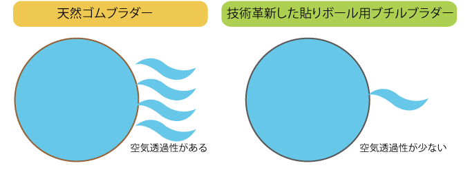 ブチルブラダーは、高い空気保持率と低反発性が大きなポイントで衝撃吸収性に優れており、弾み過ぎずタフな使用環境でも効果を発揮します。